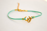 Om bracelet - string bracelet with a gold tone Om charm - ॐ (The Om id a Hindu Symbol of the Absolute). The cord is black and made of cotton and the charm is made of alloy. Closure: clasp. You can choose a different cord color from the colors shown in the last picture.