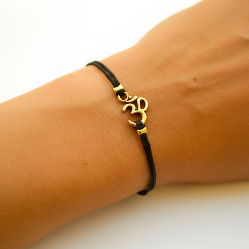 Om bracelet with gold tone Om charm, black string adjustable Yoga bracelet for her