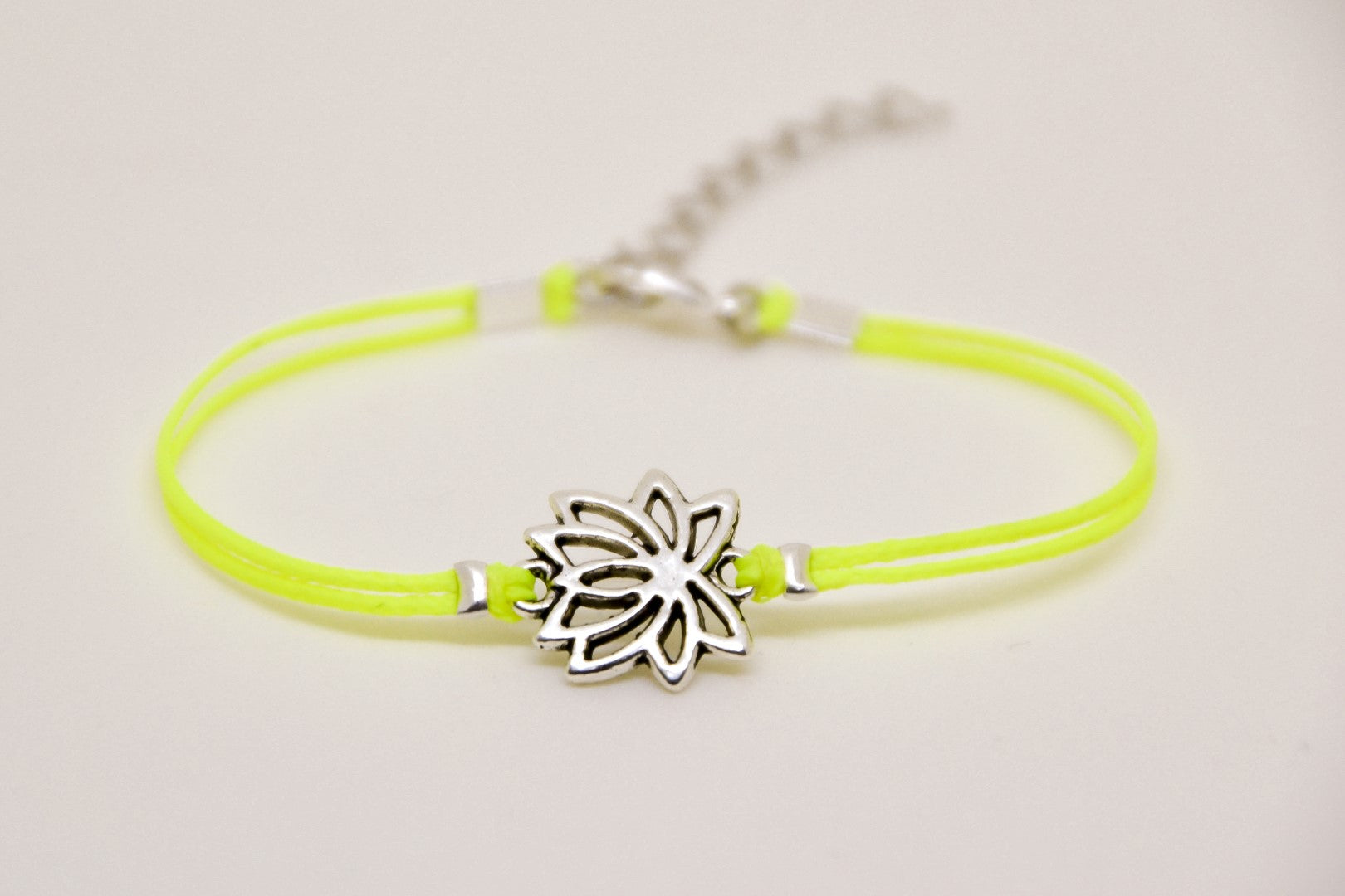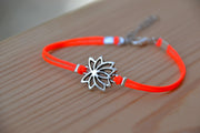 Lotus anklet - cord ankle bracelet with a silver tone lotus flower charm. The color of the cord is light blue and made of cotton and the charm is made of alloy.