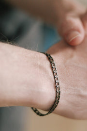 Bronze flat link chain bracelet for men, Cuban link bracelet