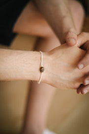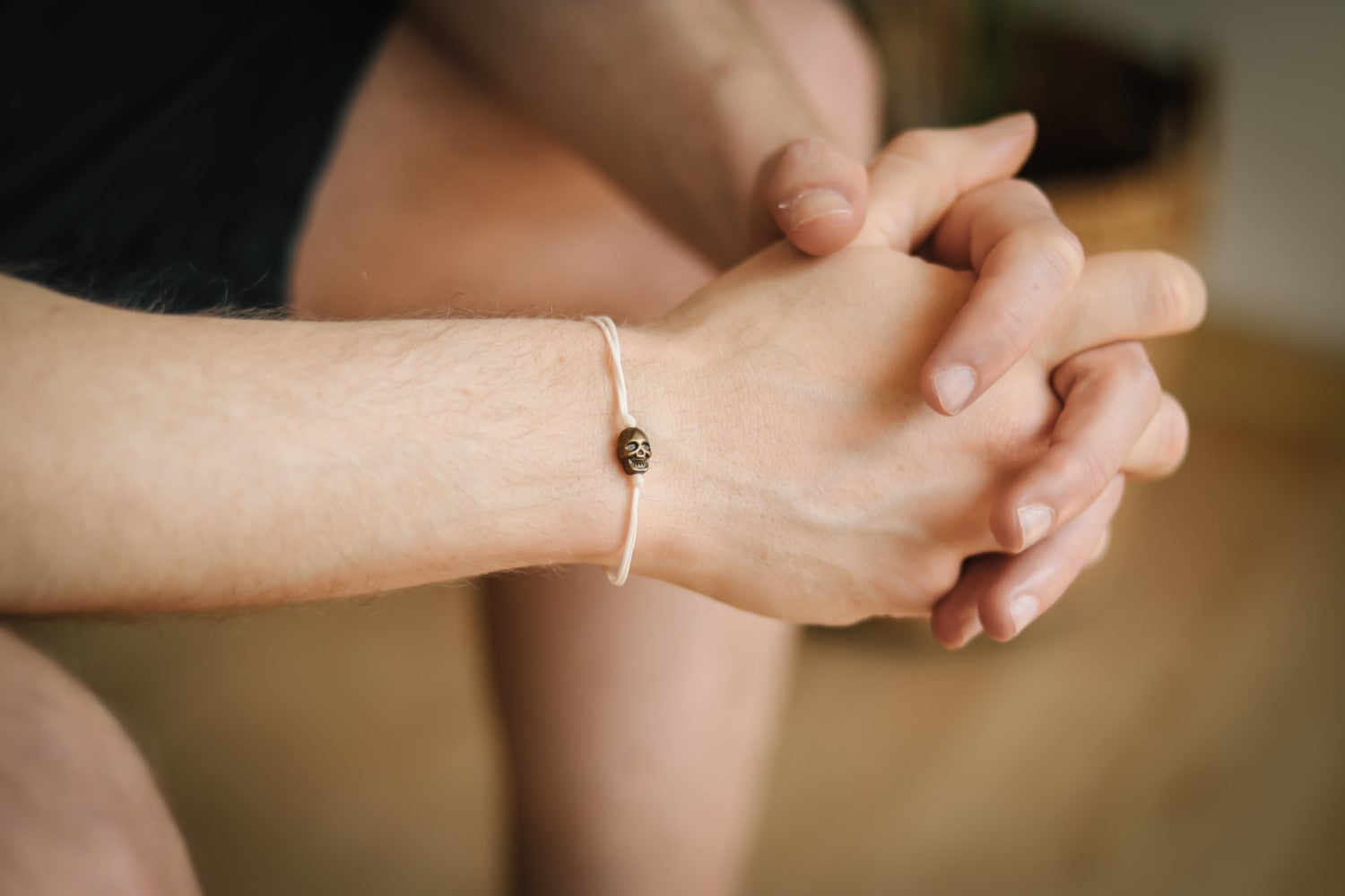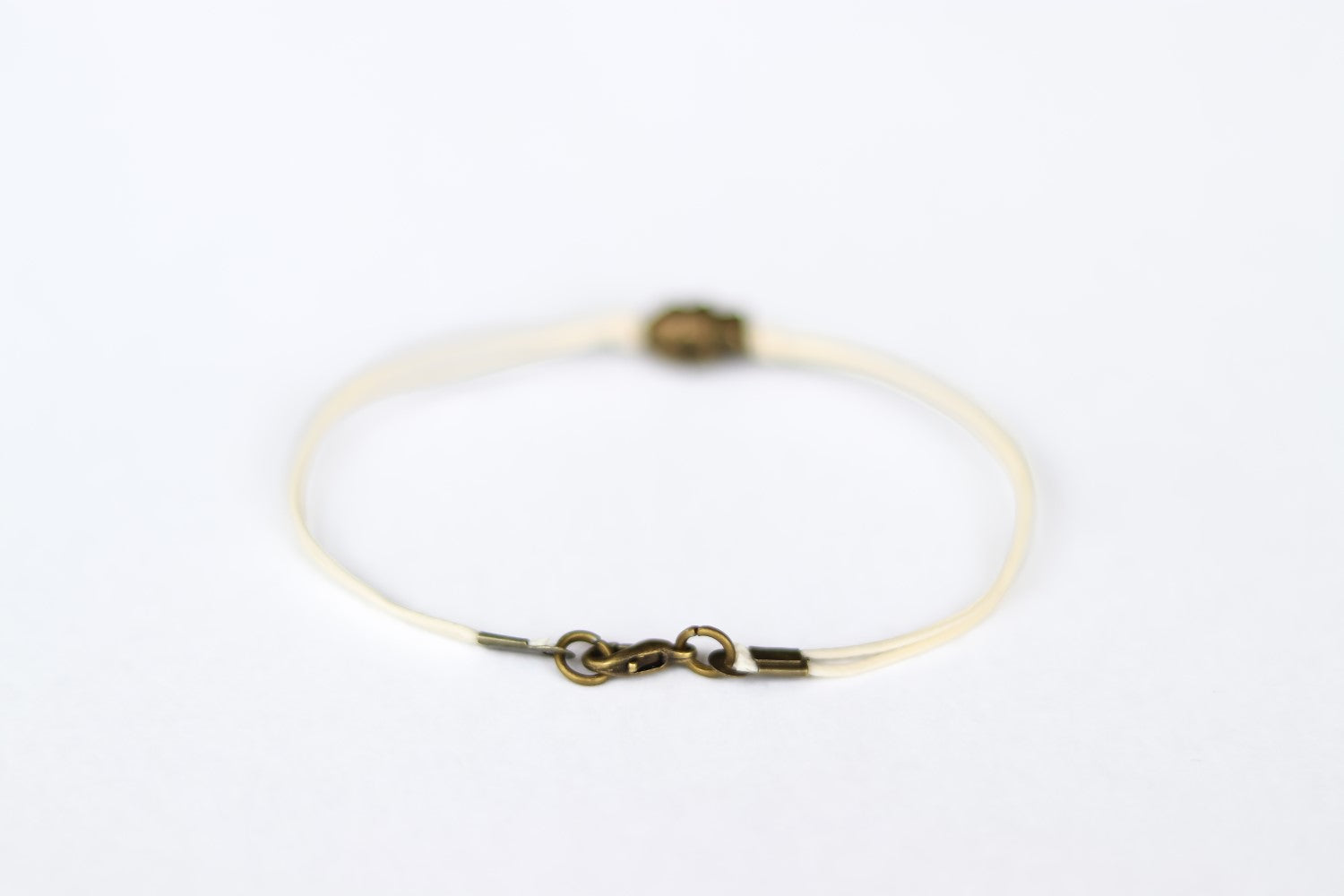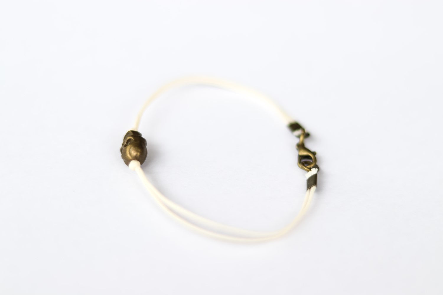 Bronze skull bead bracelet for men with beige cord a gift for him