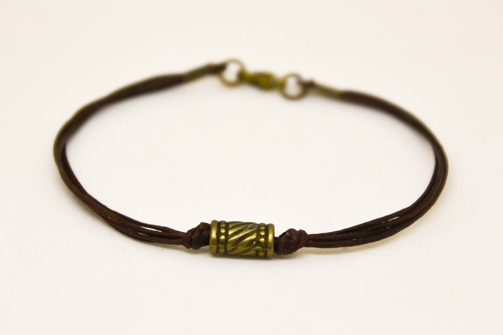 Bracelet for men - cord bracelet with a bronze tone tube bead charm. The cord is dark blue and made of cotton and the bead is made of alloy. Clasp closure. You can choose a different cord color from the colors shown in the last picture.
