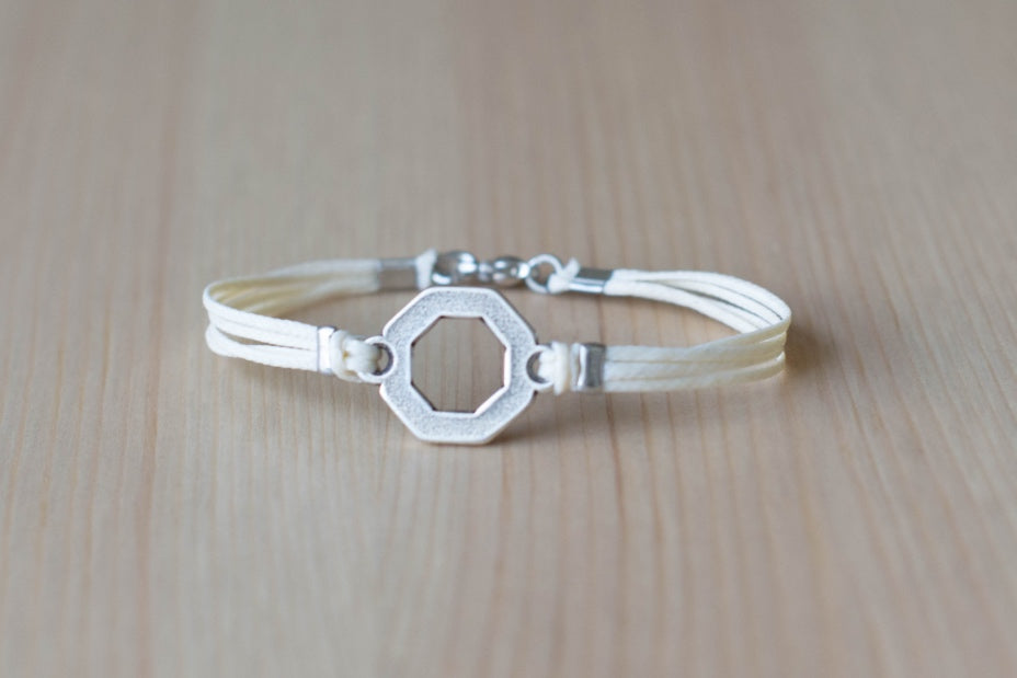 Hexagon bracelet for men - cord bracelet with a silver-plated hexagon charm. The cords are made of cotton and the charm is silver plated. You can choose a different cord color from the colors in the last picture - clasp closure.