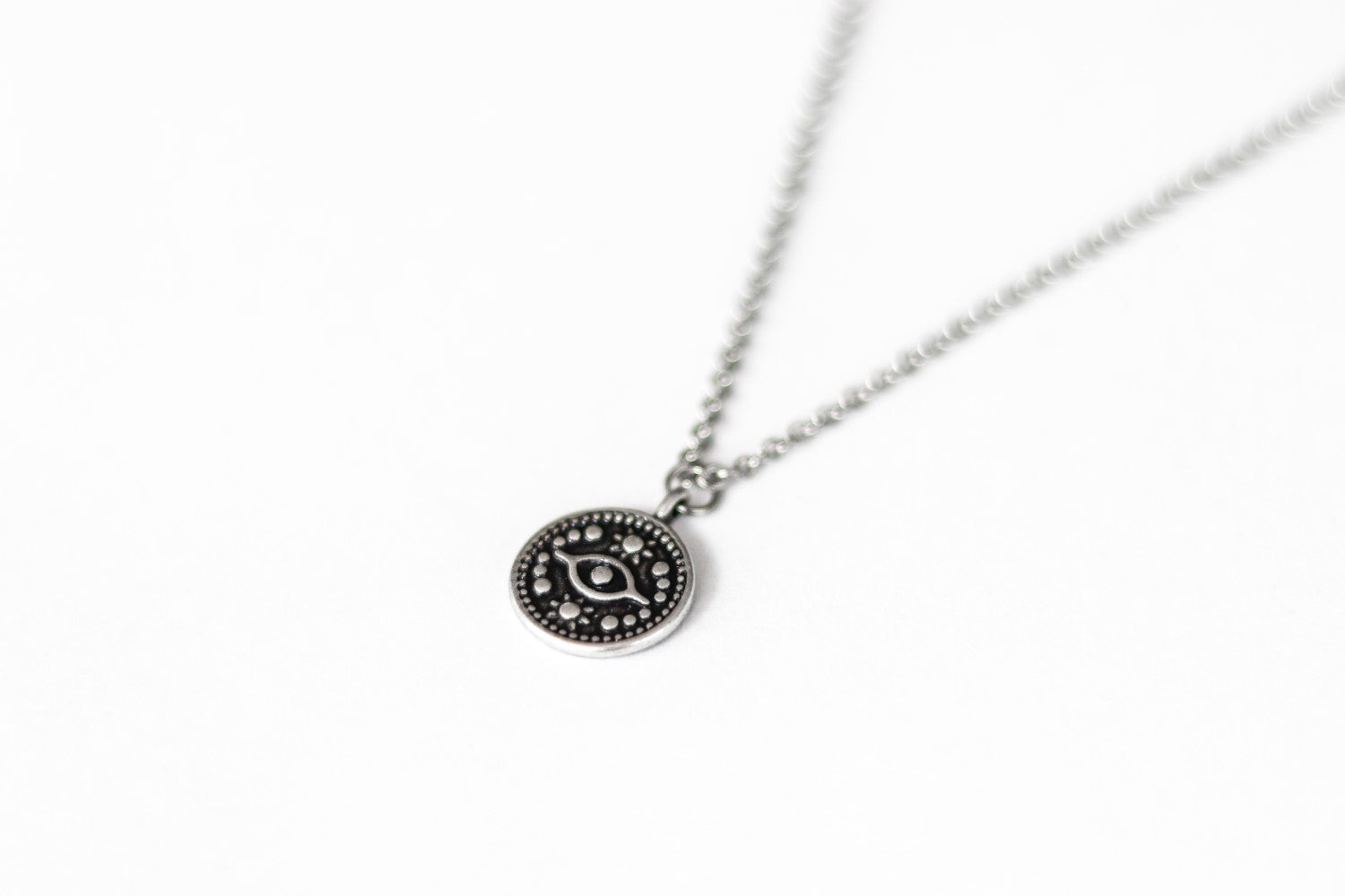 Eye necklace for men, groomsmen gift, men's necklace silver evil eye pendant, stainless chain necklace, gift for him, necklace, minimalist
