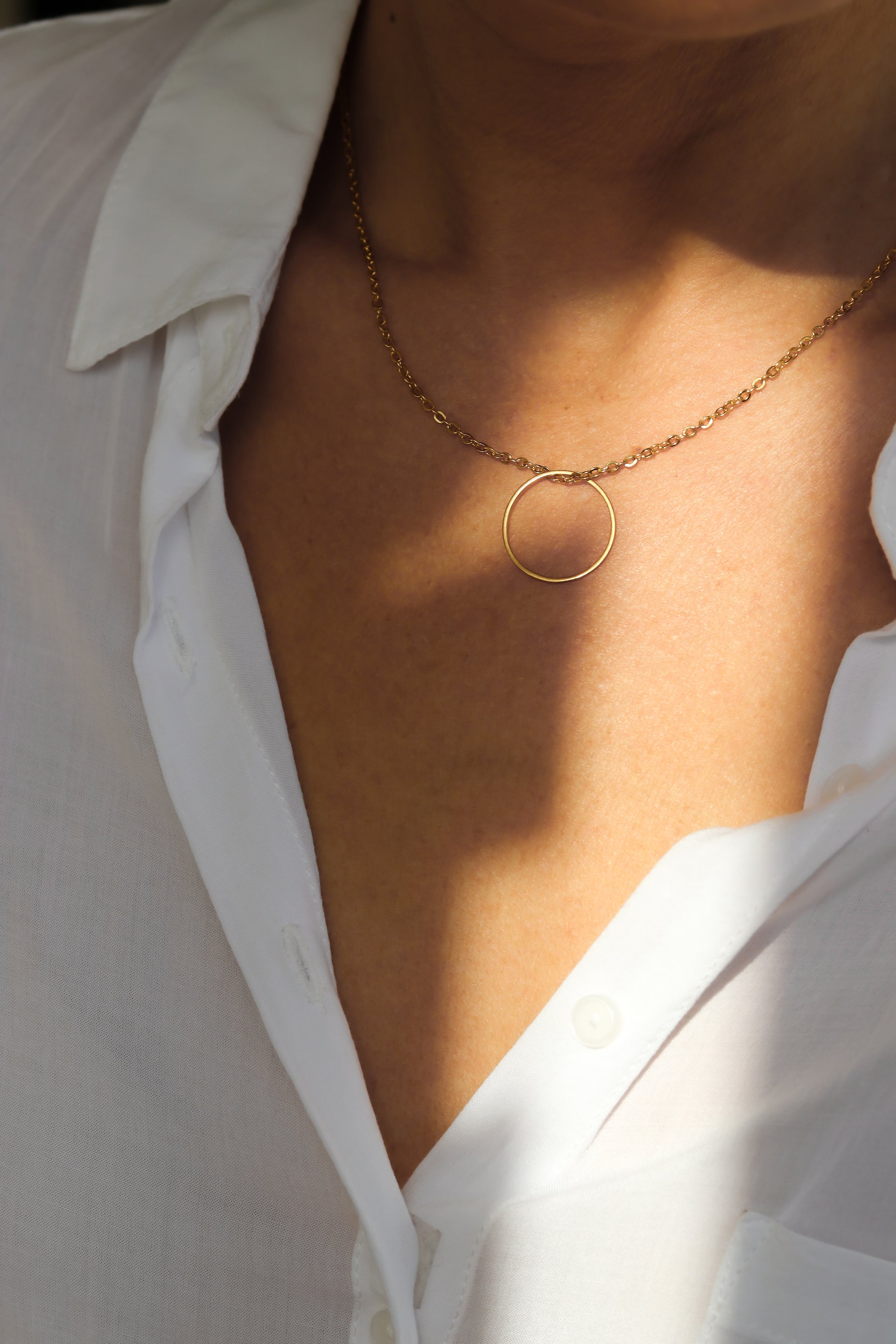 Karma and luck necklace - minimalist necklace with a stainless steel chain and gold tone stainless steel karma circle pendant.