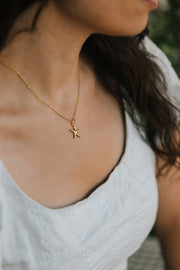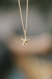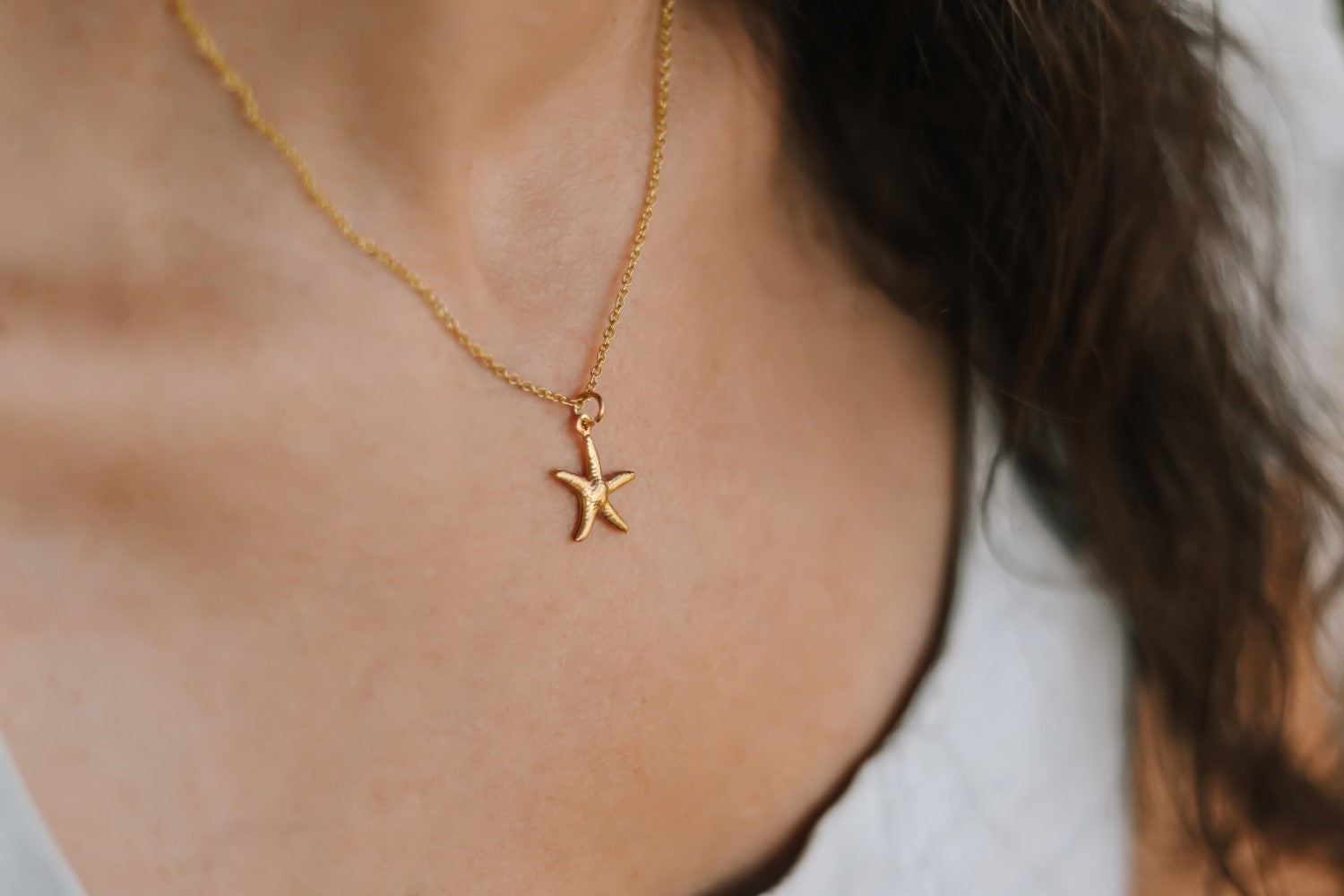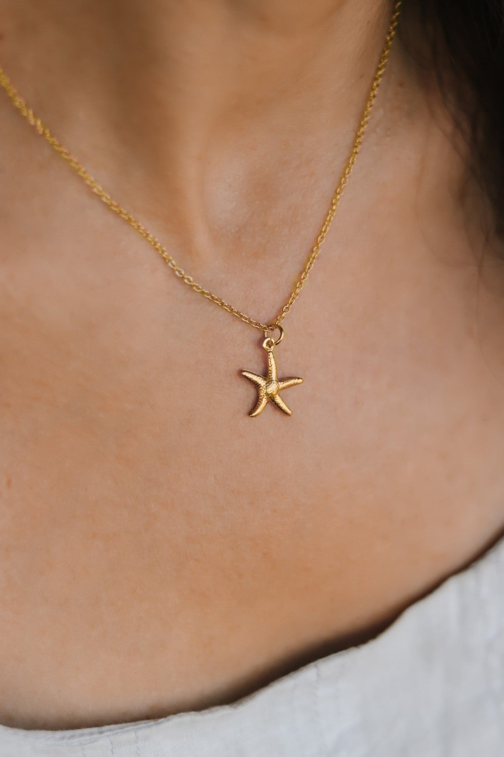 Starfish necklace - minimalist necklace with a gold tone stainless steel chain and gold tone stainless steel starfish pendant. Waterproof necklace.