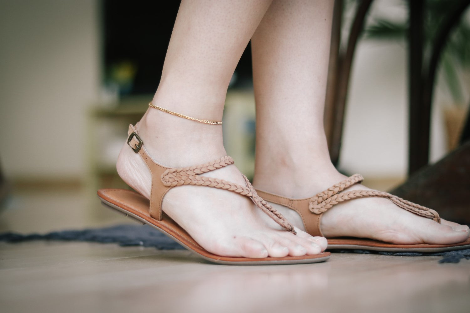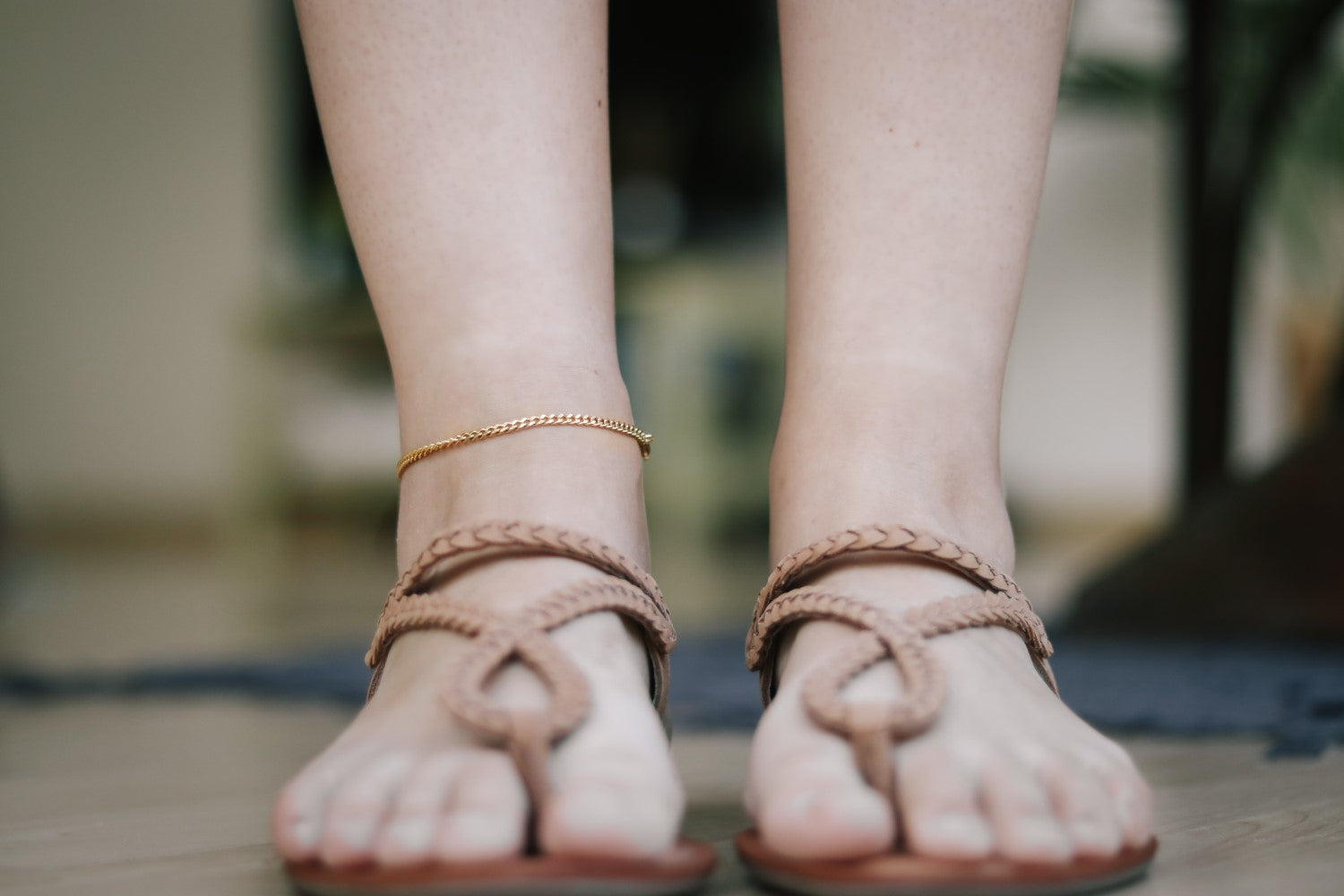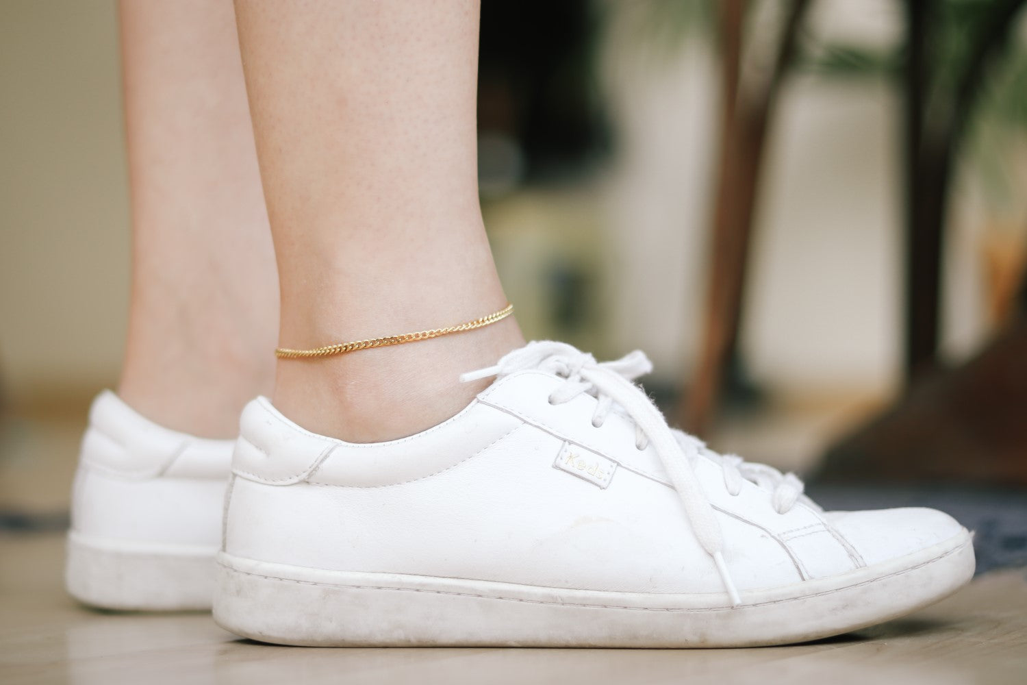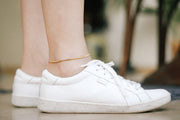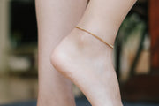 Minimalist gold tone stainless steel chain anklet (waterproof). Clasp closure.