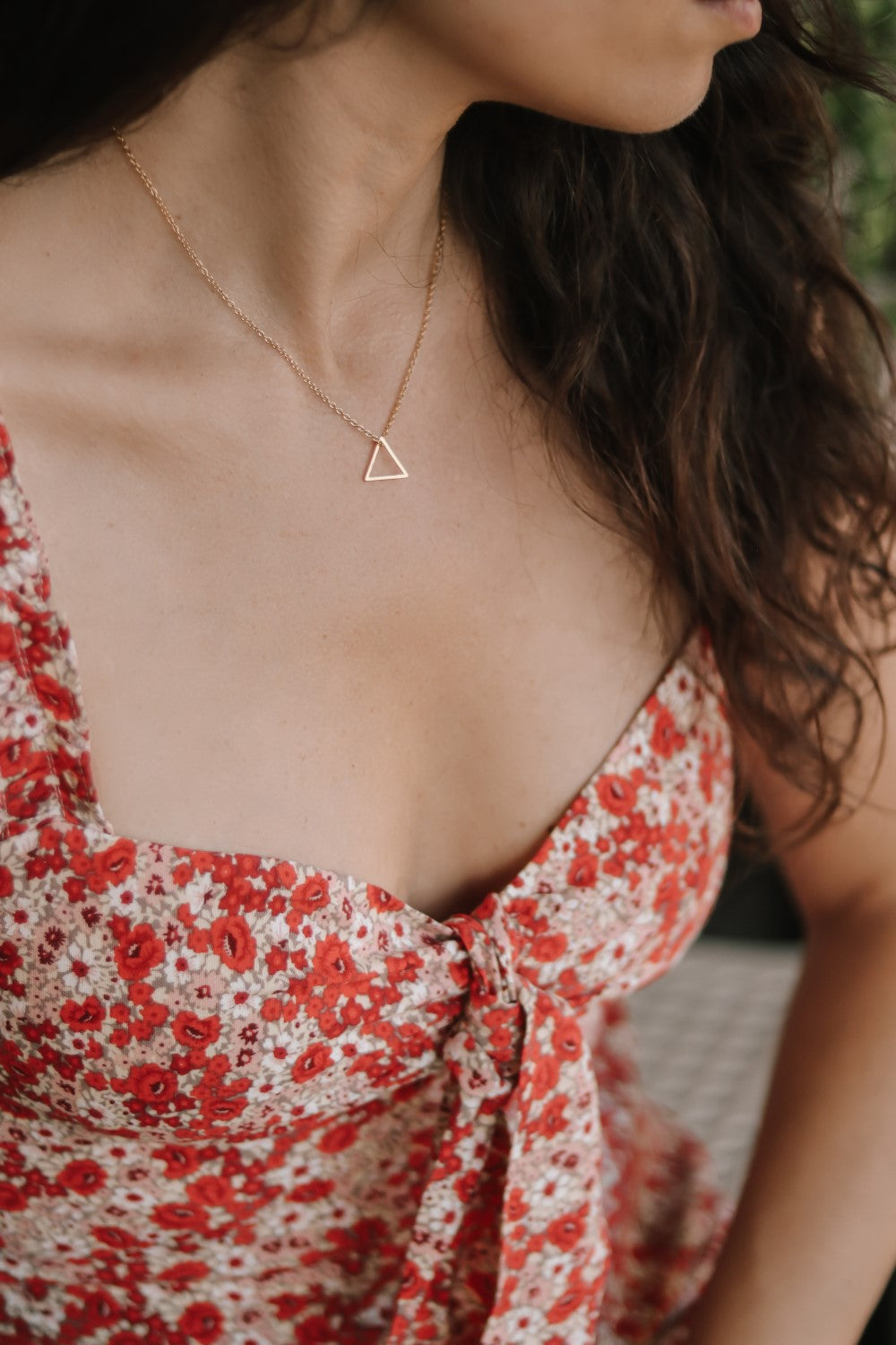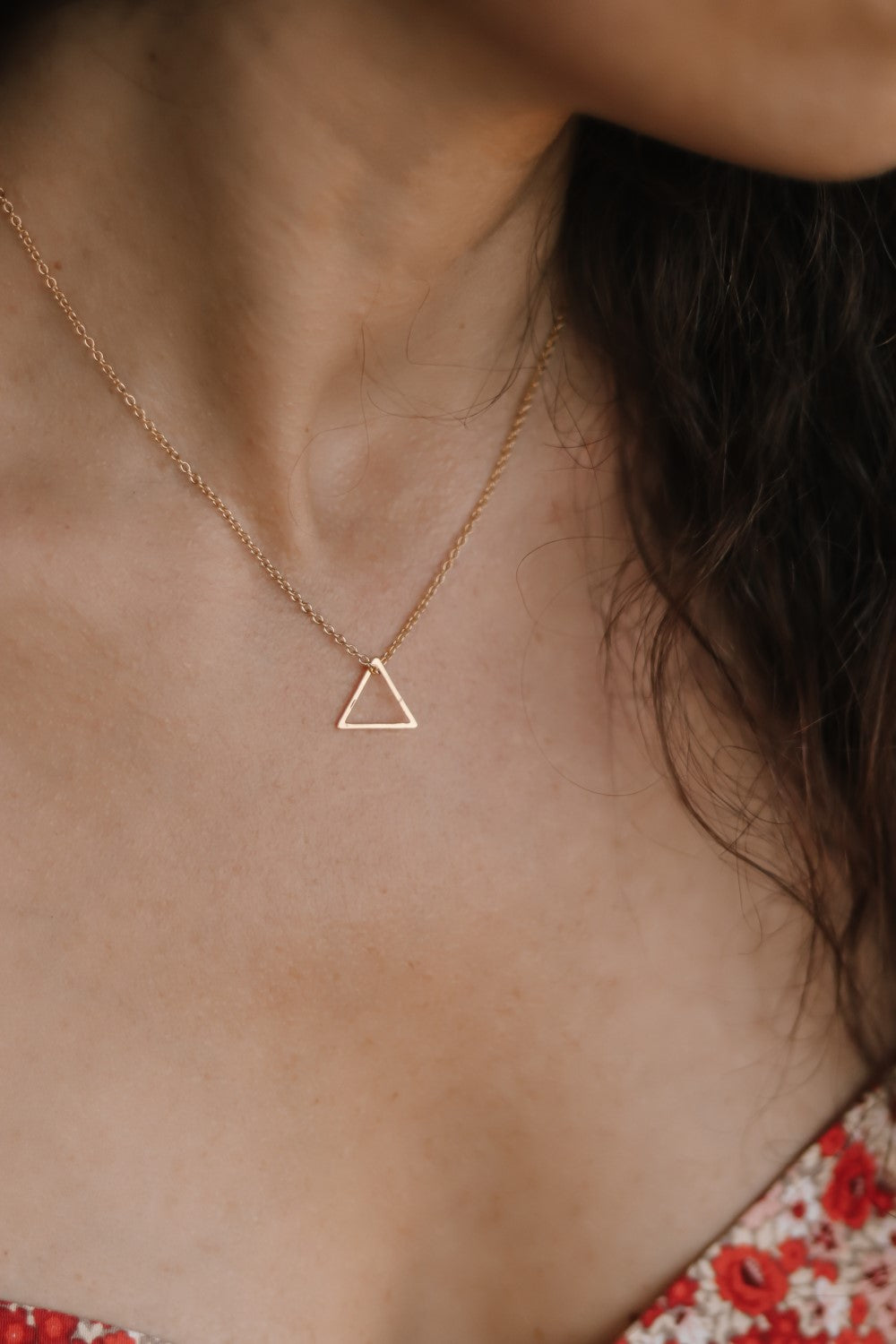 Gold triangle necklace, upside-down outline triangle, gold chain necklace, bridesmaids gift for her, geometric, Layering necklace