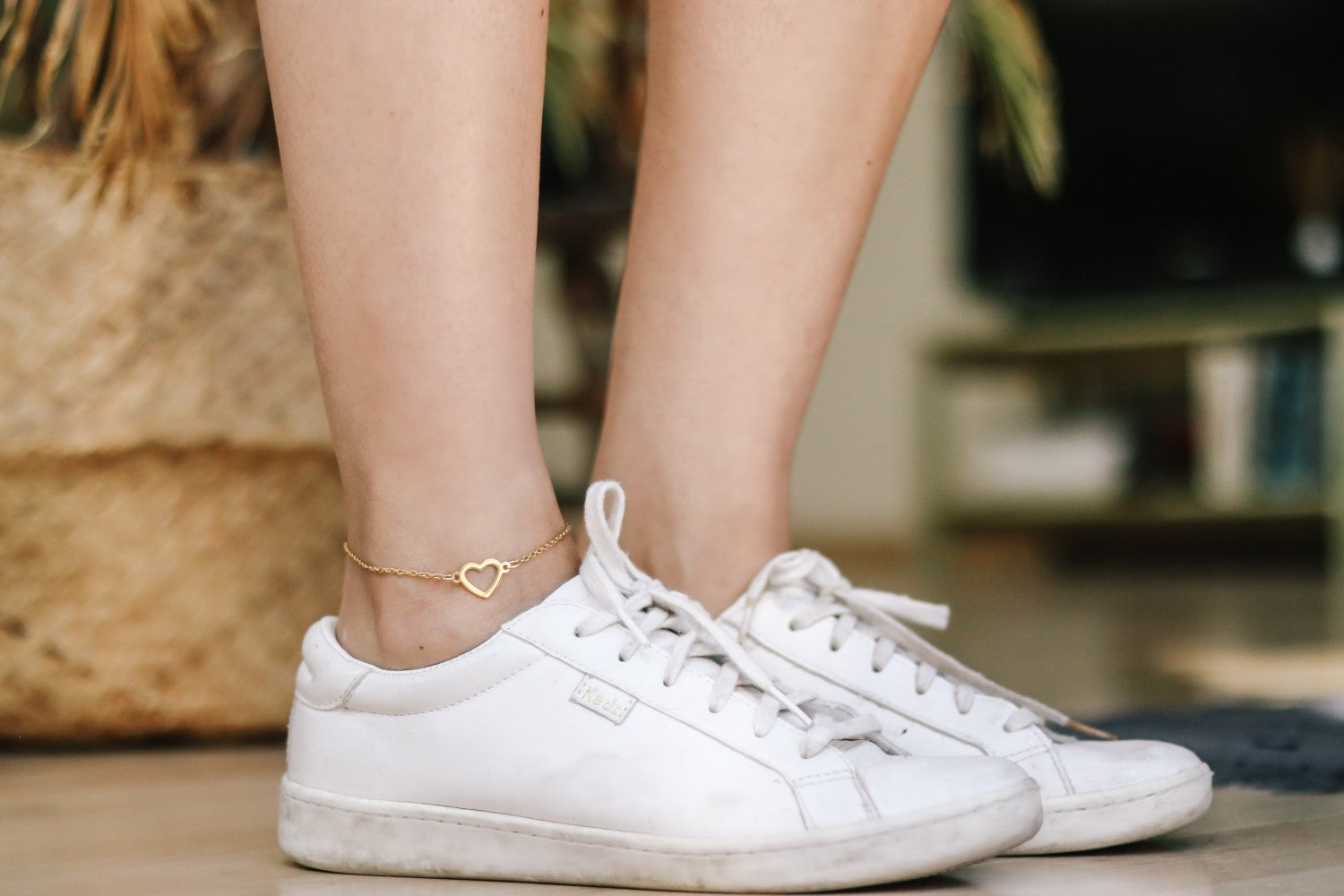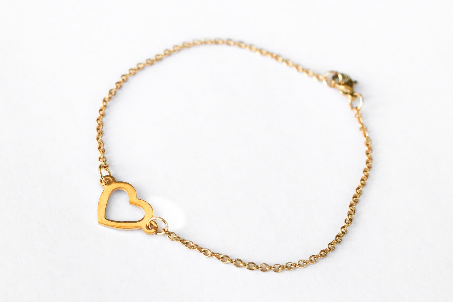 Heart anklet, gold tone chain ankle bracelet, custom size