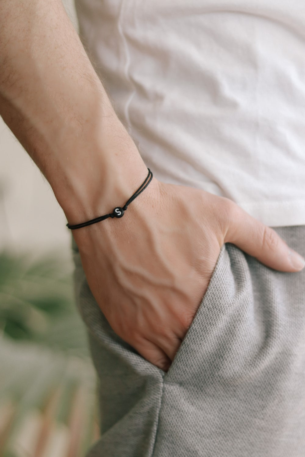 Initial bracelet for men - cord bracelet with a black round bead charm with an English letter of your choice. The color of the cord in the picture is black and it is made of cotton and the bead is made of acrylic. Clasp closure. You can choose a different cord color from the colors shown in the last picture. Please write your letter request at the 'Personalization' section before checkout (capital letters only :)), you can request more than one letter (up to three letters).