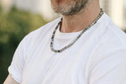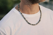 Jasper stone beads necklace for men. The Map Jasper stone is believed to bring protective energy and a sense of calmness. Also, the Map Jasper stone believed to eliminate indecisiveness, and puts words into action.