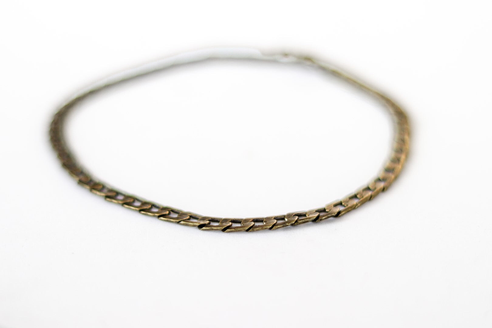 Bronze tone chain ankle bracelet for men. Clasp closure.