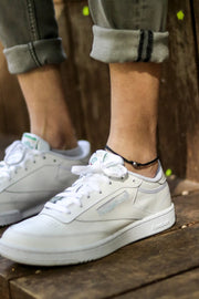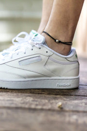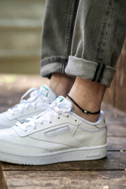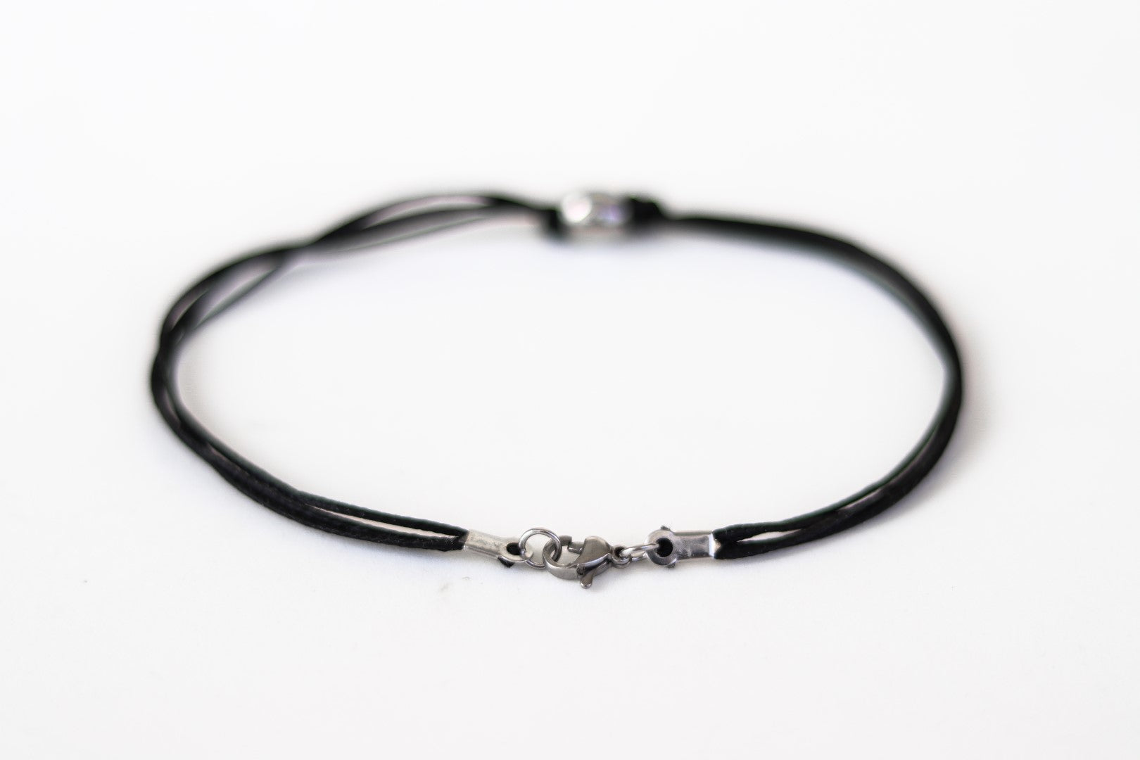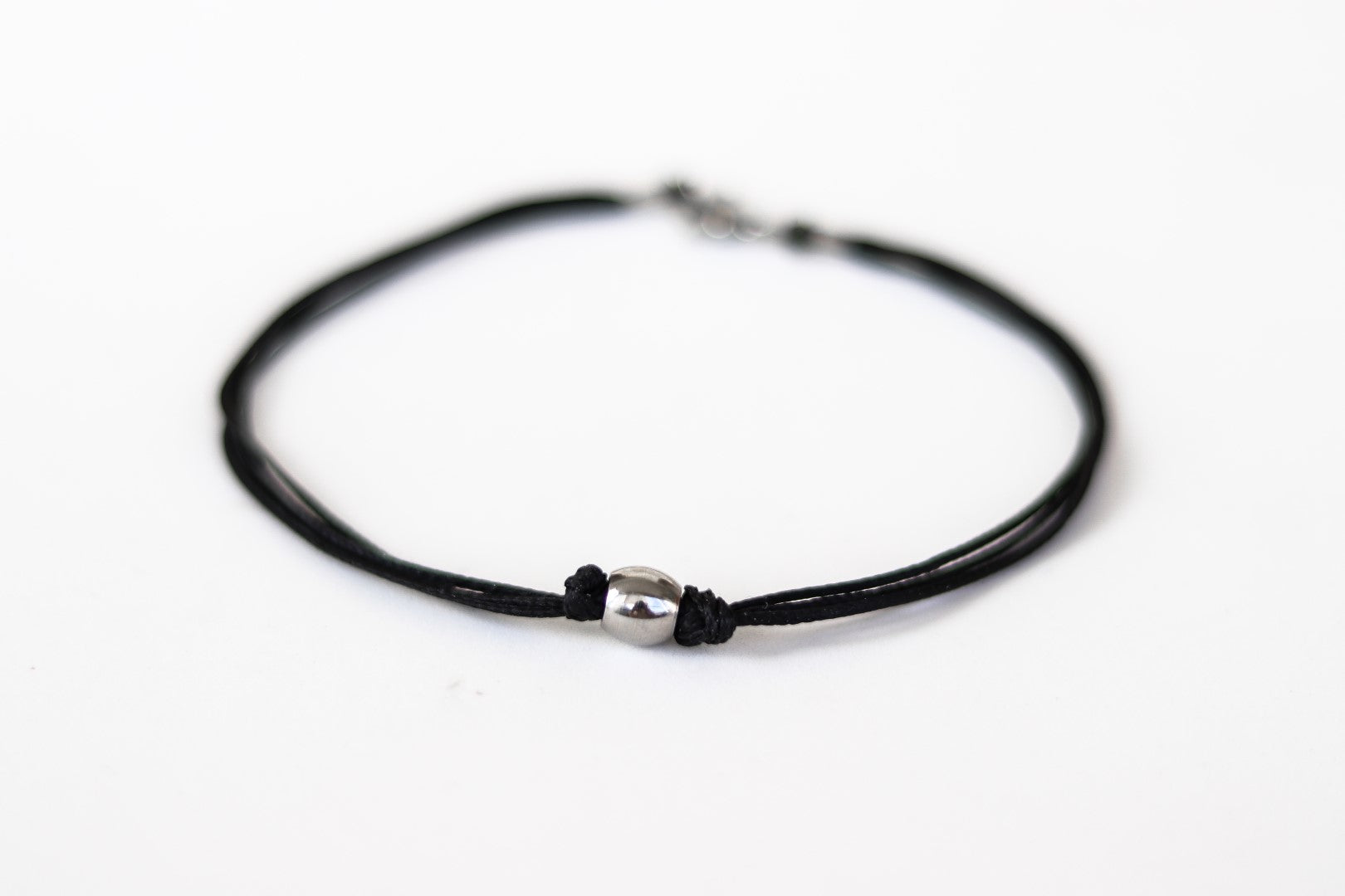Men's anklet with a stainless steel waterproof bead and a black cord