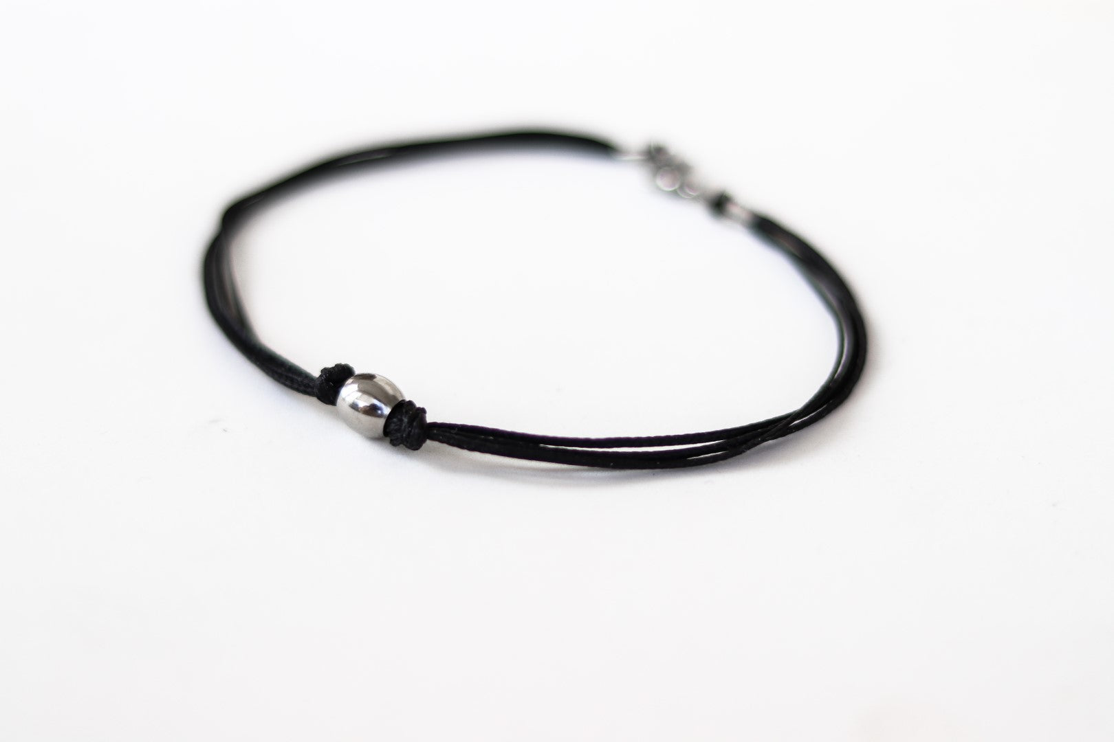 Black anklet for men - cord anklet with a silver tone tube bead. The cord is black and made of cotton and the charm is made of stainless steel (waterproof). You can choose a different cord color from the colors shown in the last picture. Clasp closure.