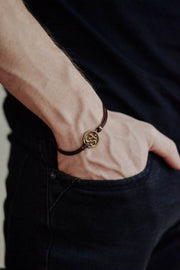 Men's bracelet bronze tone Om charm, brown cord, Christmas gift for him, meditation jewelry