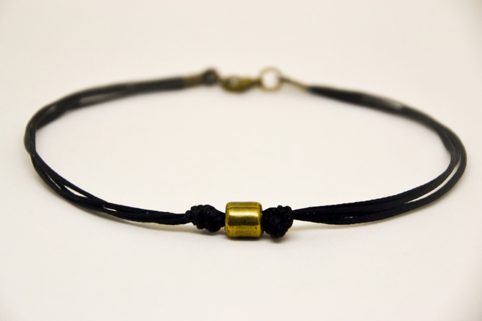 Bracelet for men - cord bracelet with a bronze tone tube bead. The cord is light brown and made of cotton and the bead is made of brass. Clasp closure. You can choose a different cord color from the colors shown in the last picture.