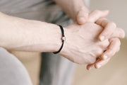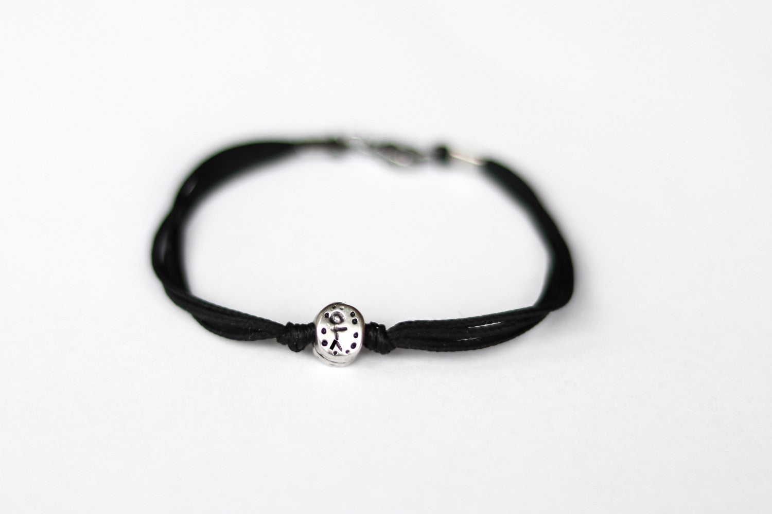 Bracelet for men - cord bracelet with a silver plated bead engraved with a child illustration. The cord is black and made of cotton and the charm is silver plated. You can choose a different cord color from the colors shown in the last picture. Clasp closure.