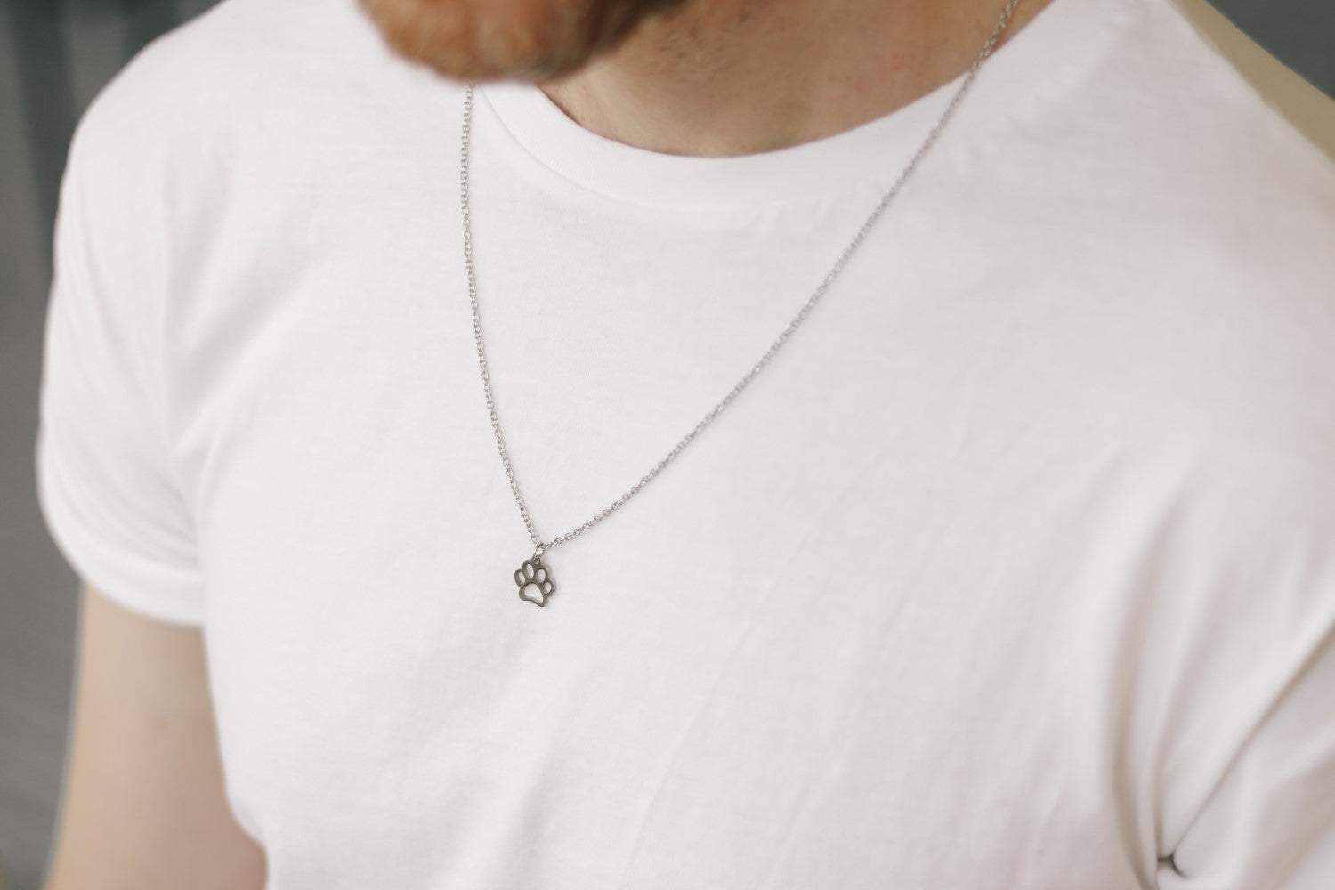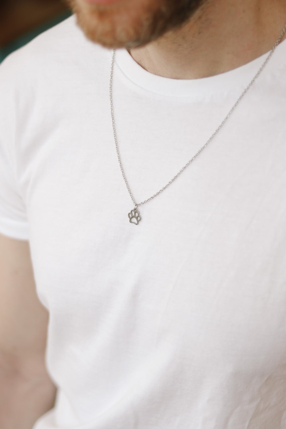 Paw necklace for men, silver chain, gift for him, waterproof pet necklace, animal lovers, festival jewelry