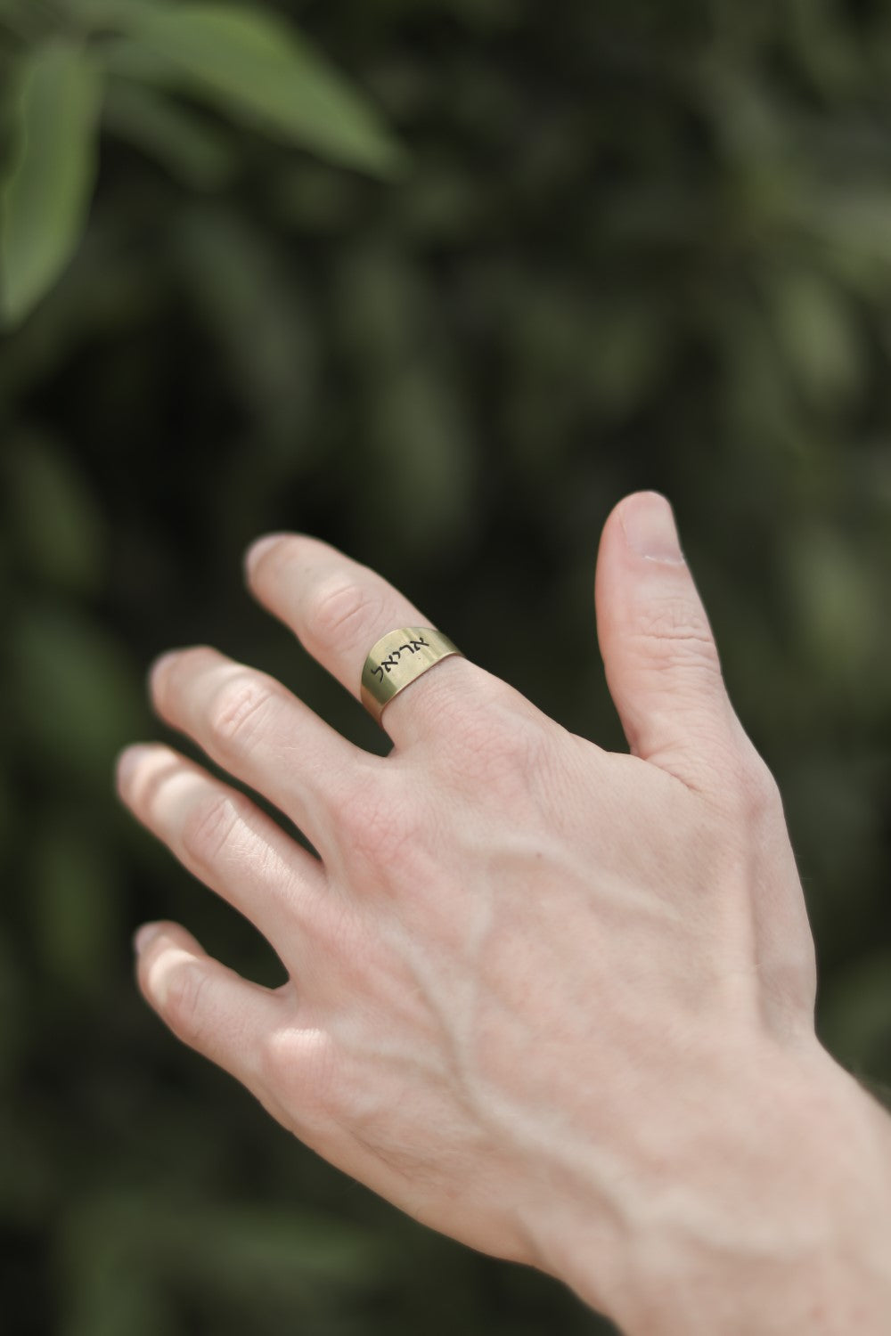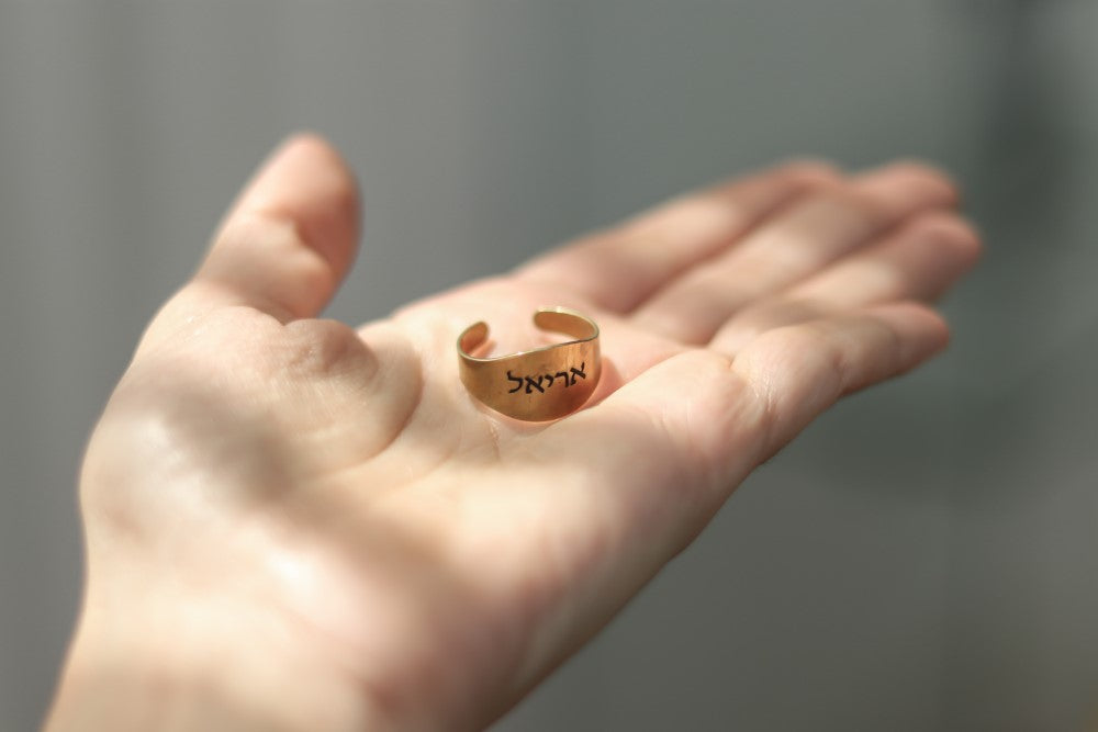 Personalized ring for men, Men's Ring with Engraved Hebrew Name, Bronze Initial Ring for Him, Jewish Gift for Father Husband, Adjustable