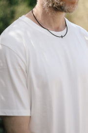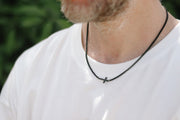 Cross necklace for men, sideways cross, mens necklace waterproof cross pendant, black chain confirmation gift for him, christian catholic