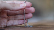 Silver tone stainless steel Rolo chain bracelet (waterproof). Clasp closure