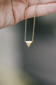 Triangle anklet with a small Triangle bead charm on a gold tone stainless steel chain. Clasp closure.