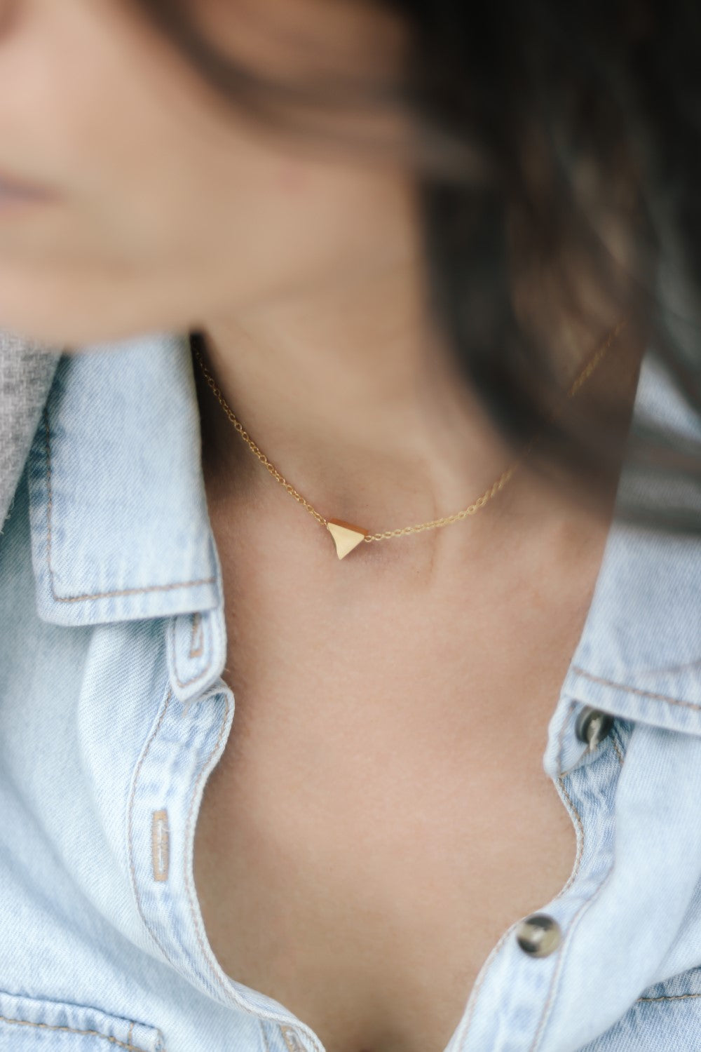 Triangle necklace, tiny gold bead necklace, chain necklace, personalised jewelry, festival jewelry