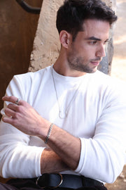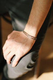 Silver tone link chain wrapped bracelet for men. Clasp closure.