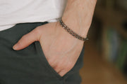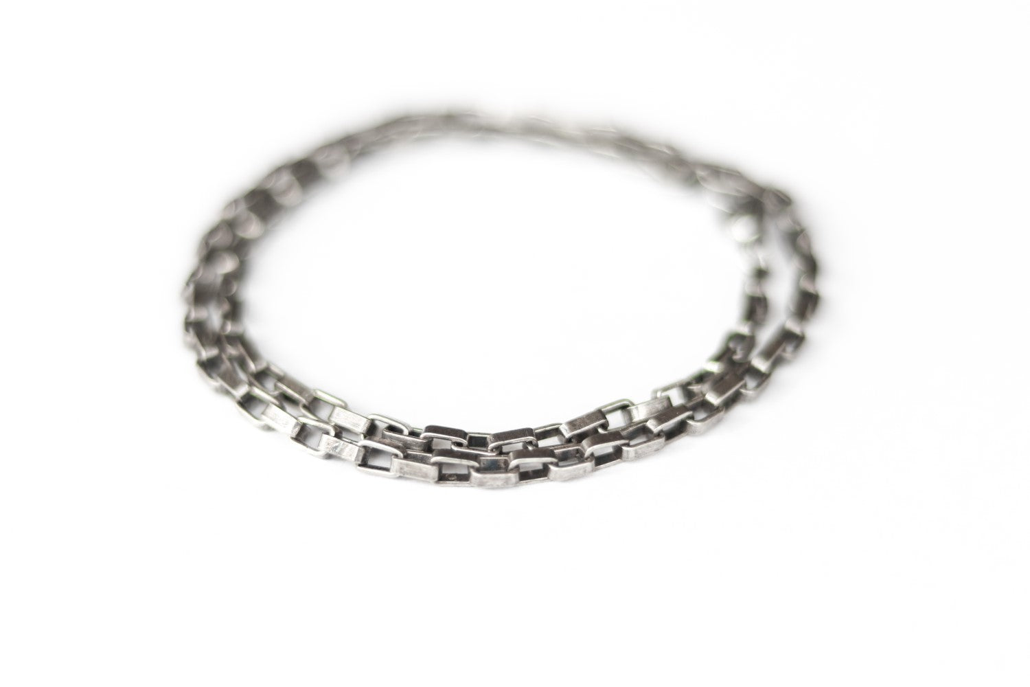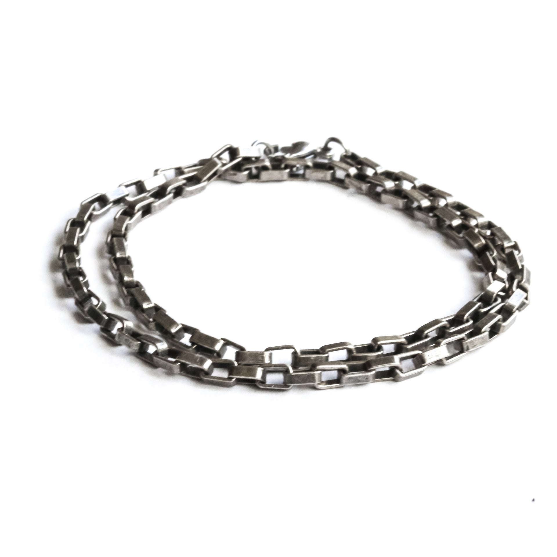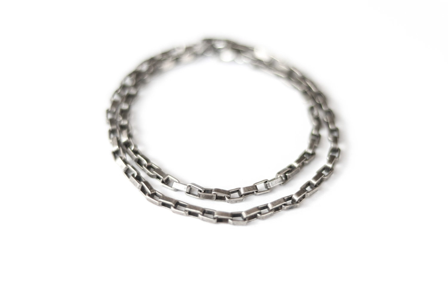 Wrapped chain bracelet for men, silver elongated cable chain, customize gift for him, mens jewelry, minimalist jewelry, fathers day gift box