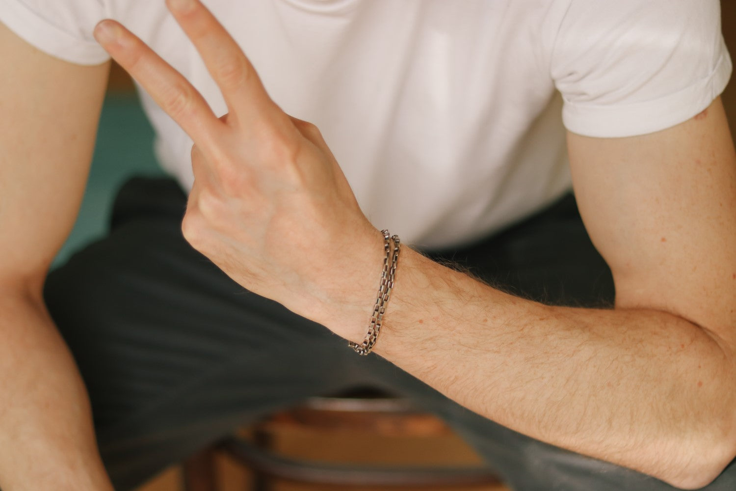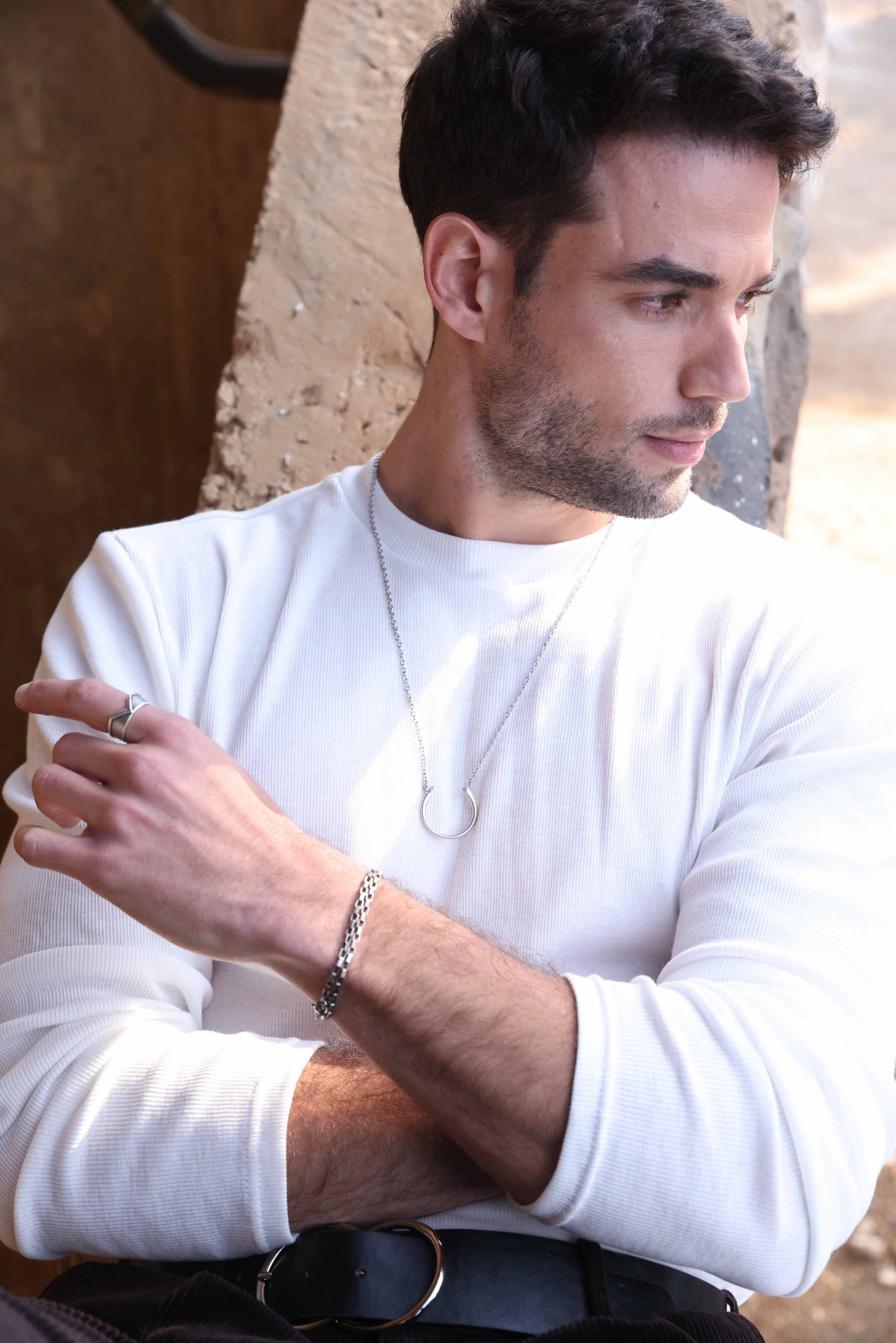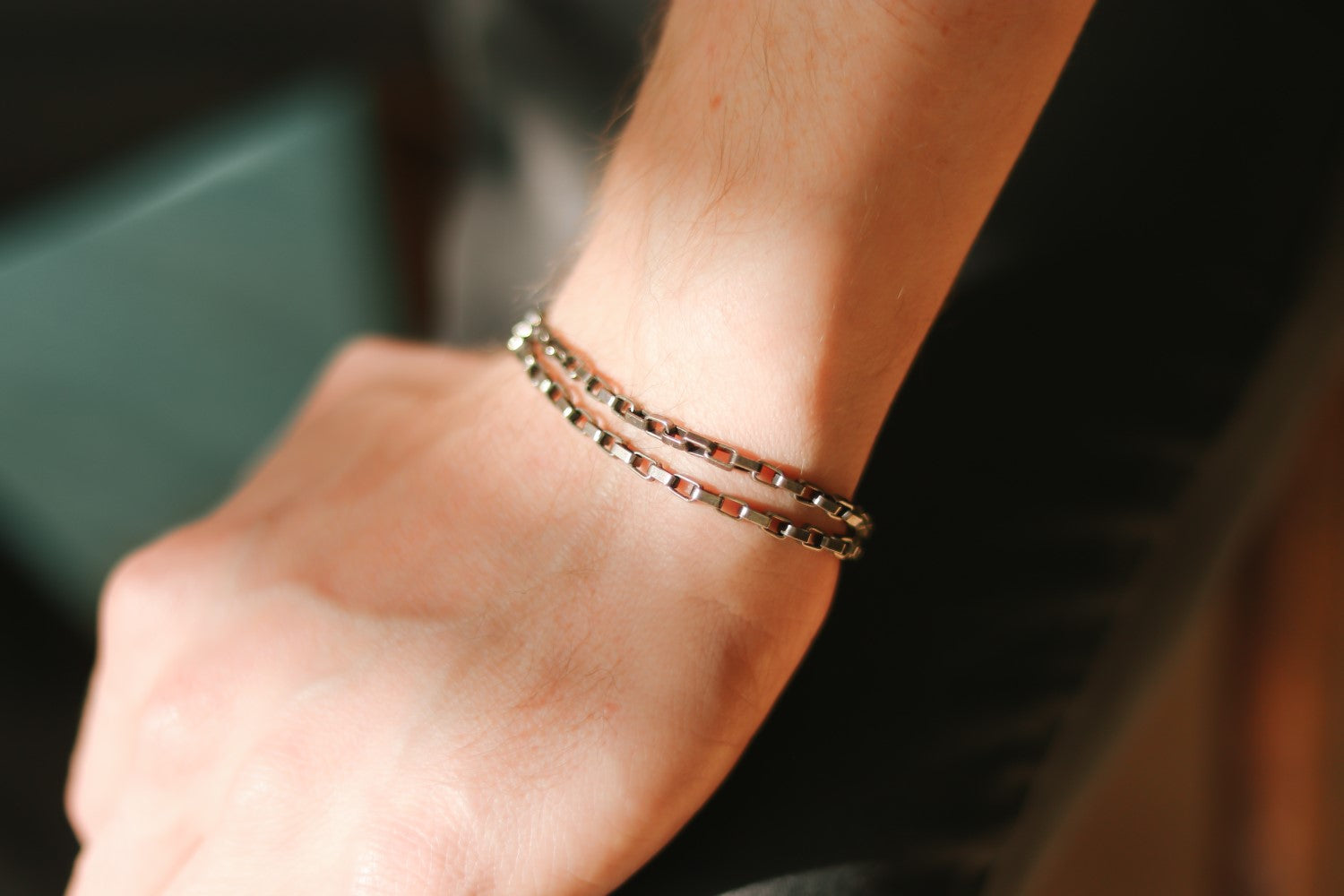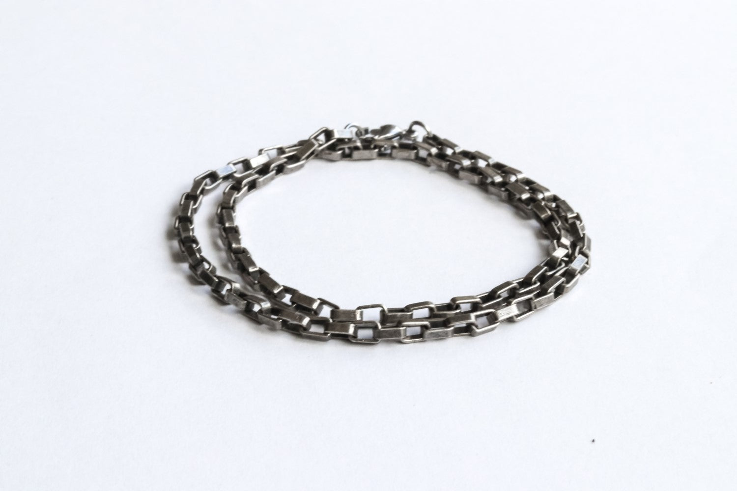 Wrapped chain bracelet for men, silver elongated cable chain, customize gift for him, mens jewelry, minimalist jewelry, fathers day gift box