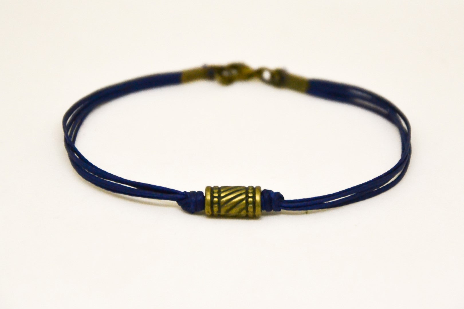 Anklet for men - cord anklet with a bronze tube bead. The cord is black and made of cotton and the charm is made of alloy. You can choose a different cord color from the colors shown in the last picture. Clasp closure.