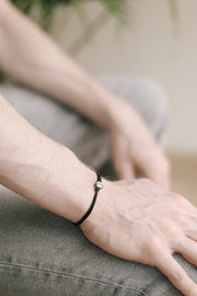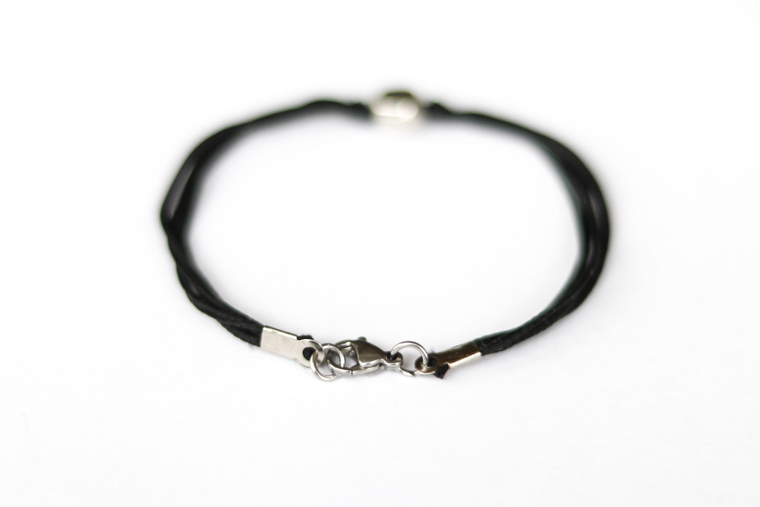 Bracelet for men - cord bracelet with a silver plated bead engraved with a child illustration. The cord is black and made of cotton and the charm is silver plated. You can choose a different cord color from the colors shown in the last picture. Clasp closure.
