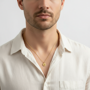Lotus necklace for men - men's necklace with a gold tone stainless steel Lotus pendant on a stainless steel chain and a clasp closure.