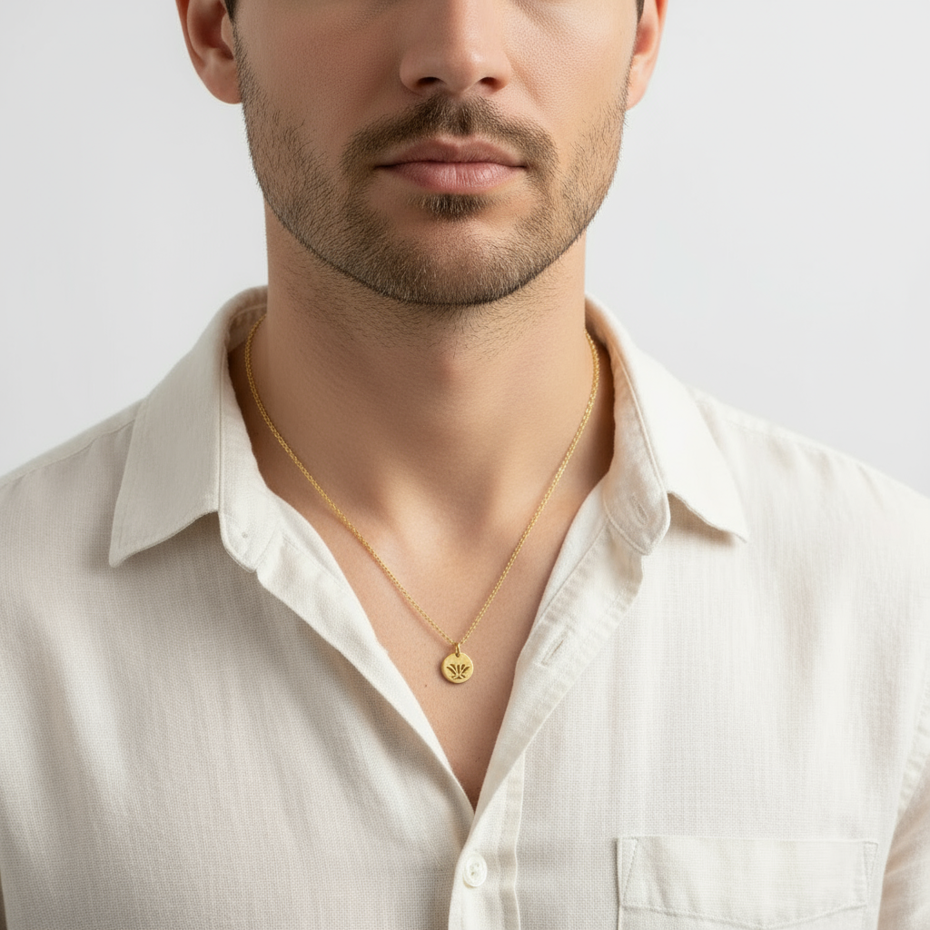 Gold Lotus necklace for men, stainless steel chain necklace, waterproof