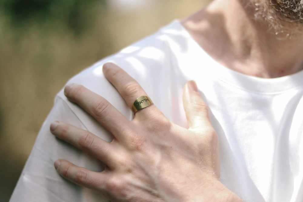 Personalized ring for men, Men's Ring with Engraved Hebrew Name, Bronze Initial Ring for Him, Jewish Gift for Father Husband, Adjustable