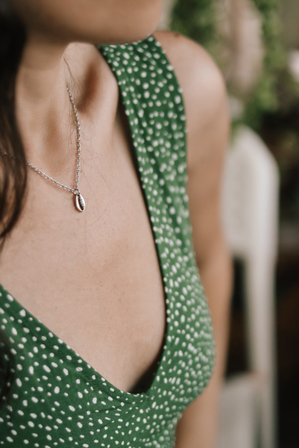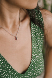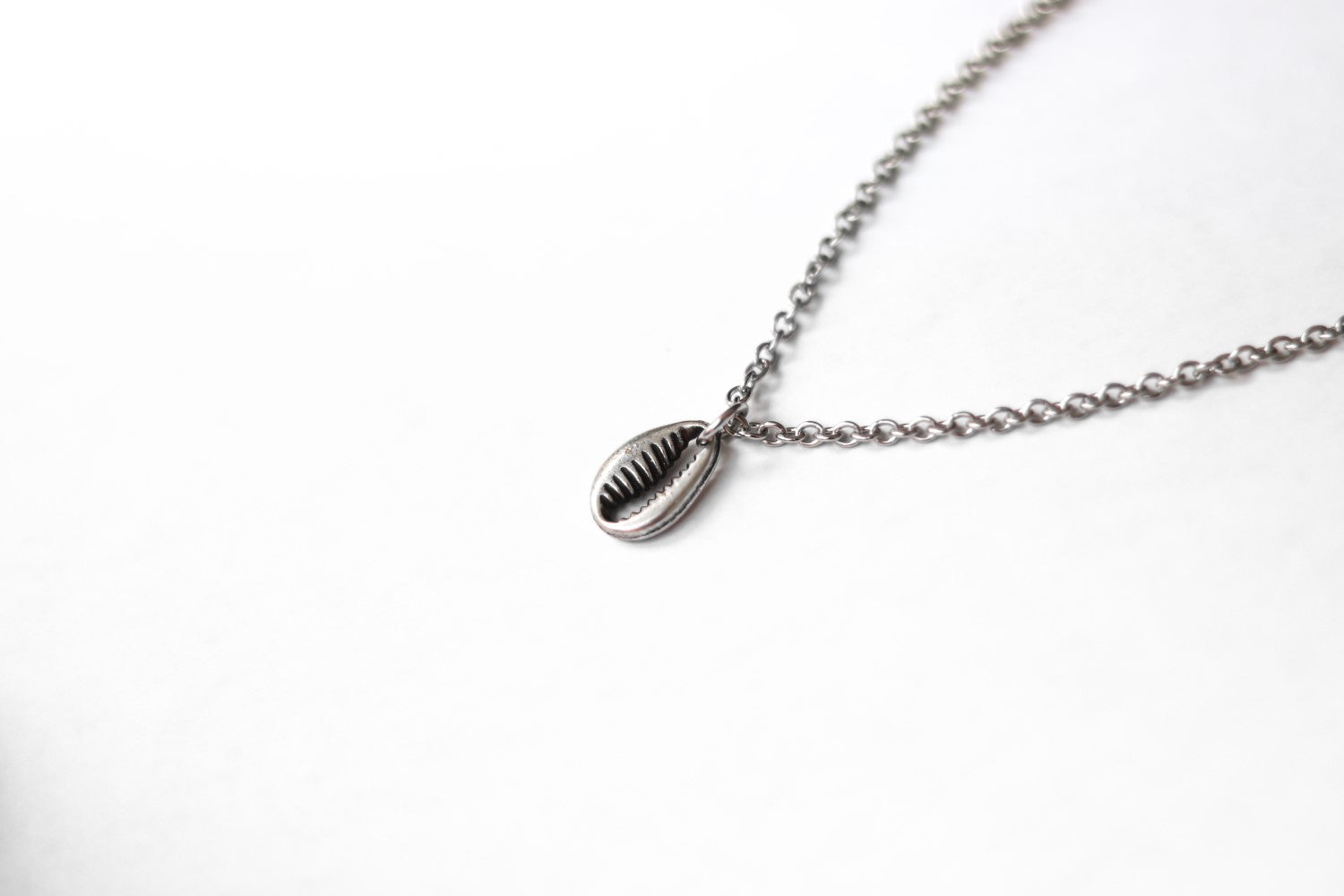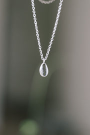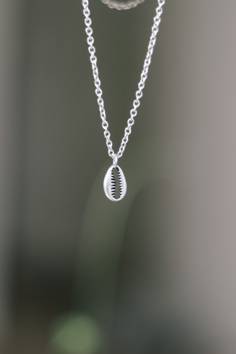 Cowrie seashell necklace - minimalist necklace with a silver tone stainless steel chain and silver plated cowrie seashell pendant.