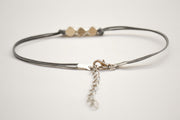 Silver plated nuggets anklet, gray string, handmade gift for her